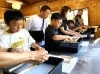 休憩所内では紙すき体験ができるほか、外に出ると鯉のえさやりも楽しめます。