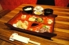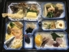 天ぷら、煮物、焼き物、煮魚、刺身、冷ややっこ、酢の物、漬物、デザートと盛りだくさんの内容。