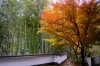 枯山水庭園に映えるもみじの紅葉は、見ごたえがあります。竹林の緑色とのコントラストもお見逃しなく!