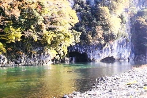 奇岩・断崖がそびえ、川の流れがつくる涼やかな空気が、訪れる人をやさしく包み込みます。遊歩道は整備されており、四季の彩りを感じながら散策できるのも魅力。特に新緑と秋の紅葉シーズンは人気で、自然の雄大さと静寂を味わえる絶好のスポットとして多くの人に親しまれています。