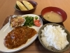 日替わりランチ。魚料理・肉料理・カレーなど、手作りで提供。この日のランチはハンバーグでした。