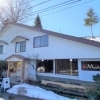 〈千屋花見〉いぶきの里スキー場の入り口に、大きな三角屋根が特徴的な「Cafe & Live Musik(ムジーク)」…
