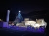 高さ12メートルのヒノキの巨大ツリーは見ごたえありフェンス沿いもキラキラ!
