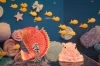 「お菓子の水族館」は、もともとある新見美術館の展示空間を活かした展示で、ガラスケースを水槽に見立てています。お菓子でデコレーションされた不思議な生き物も泳いでいますよ。涼しい「お菓子の水族館」で楽しんでもらえたらと思います。