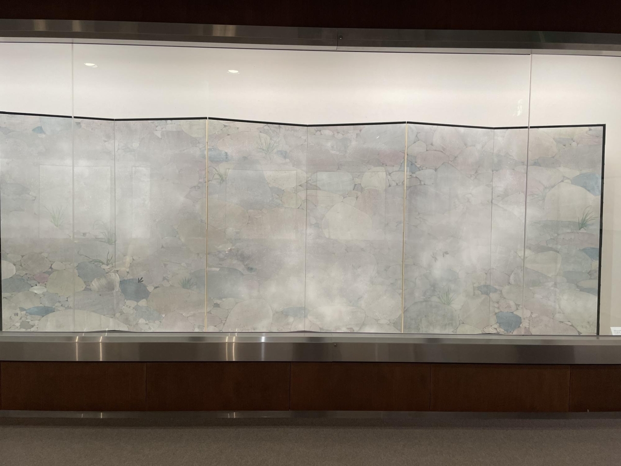 大宰府天満宮に奉納される前に、全国で巡回展が開催され、今回新見美術館にもやってきました。奉納される際は、襖に仕立てられるため、襖になる前の状態で見ることができるのは今回が最後です。