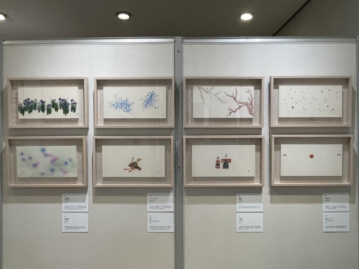 太宰府天満宮への奉納作品は、第一展示室・第二展示室に展示されています。実際に太宰府天満宮にやってくる鳥や生き物、木々をモチーフに描かれています。