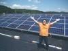 ピカピカのソーラーパネルの前でポーズを決めてくれた、体も心も器も大きな佐久本社長。